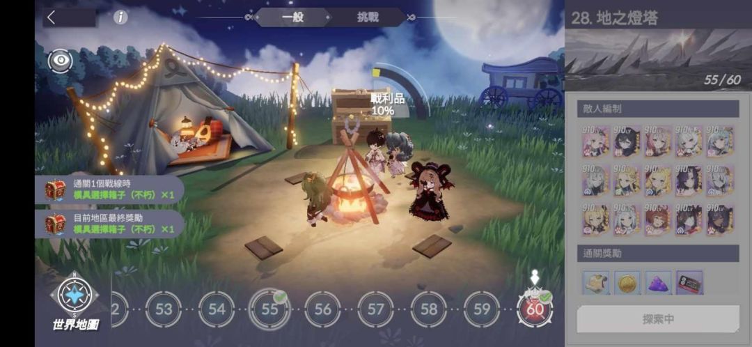 1.主線攻略前的事前準備首先事前準備的部分,最重要的當然是確認自己角色的練度,包含等級、禮品、遺器這三個面向,以攻略目前主線最新進度的28章為例,我認為比較適合攻略的等級大約是320等左右,除非你像我一樣吃飽太閒又喜歡挑戰自我,否則請不要在均等未滿300前去挑戰後面的主線,不然你就會很需要閱讀本篇第六章。禮品的部分推薦各位先去進行主線挑戰模式,因為挑戰模式那裏有不少自選箱,而且挑戰模式和主線不同,如果你的等級高過挑戰模式的敵人,那麼你的角色等級也會強制被下修到和敵人等級相同,所以即使等級只有200出頭,要把挑戰模式打到第10章甚至更後面也沒有問題,會推薦各位先打挑戰模式的原因是因為挑戰模式當中是可以獲得裝備自選箱的,特別是從挑戰模式13章開始的最後一關送的自選箱甚至是永恆+的,補足自己需要的禮品詞條是非常重要的,其他非永恆+的自選箱則推薦各位選擇智力加速套,因為這東西不論你有多少套都不夠。