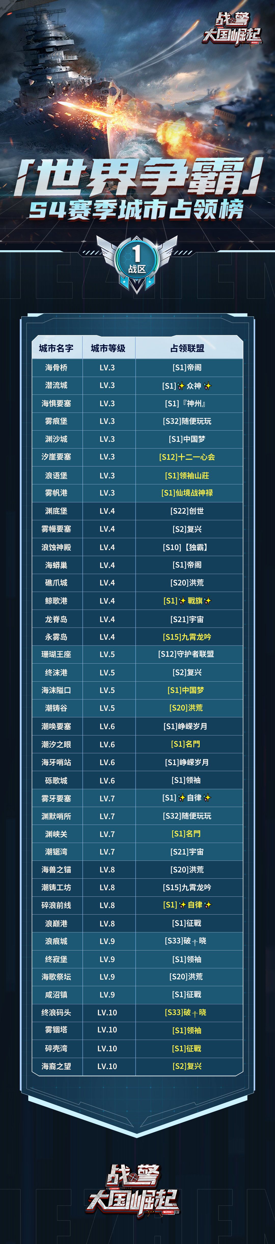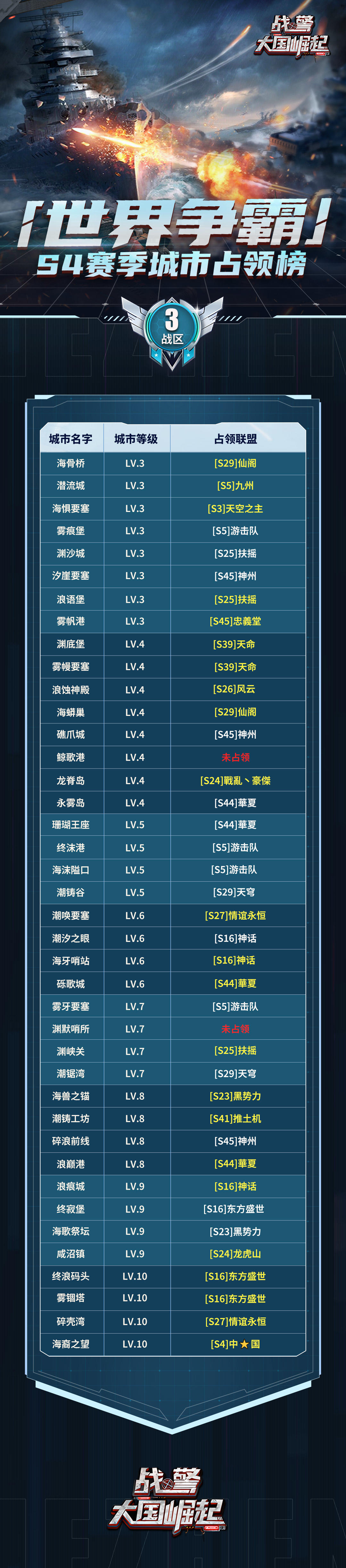 【海上速报】S4 赛季第八周世界争霸城市占领榜