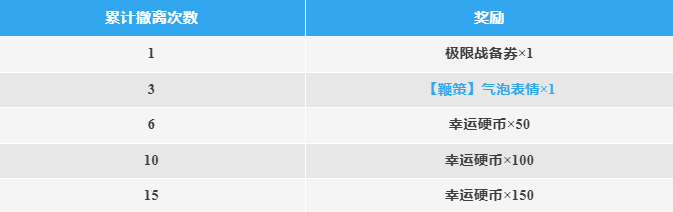 在本次活动中,肠肠共可获得极限战备券×1、【鞭策】气泡表情×1、幸运硬币×300