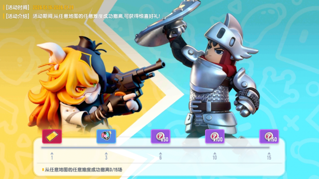 活动期间肠肠们参与摸金模式,从任意地图的任意难度完成撤离,累计次数达标即可获得极限战备券、【鞭策】气泡表情、幸运硬币等惊喜好礼!