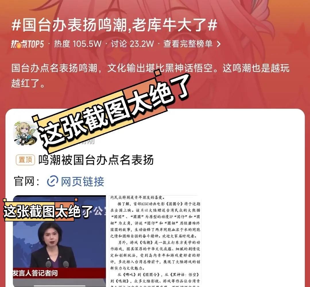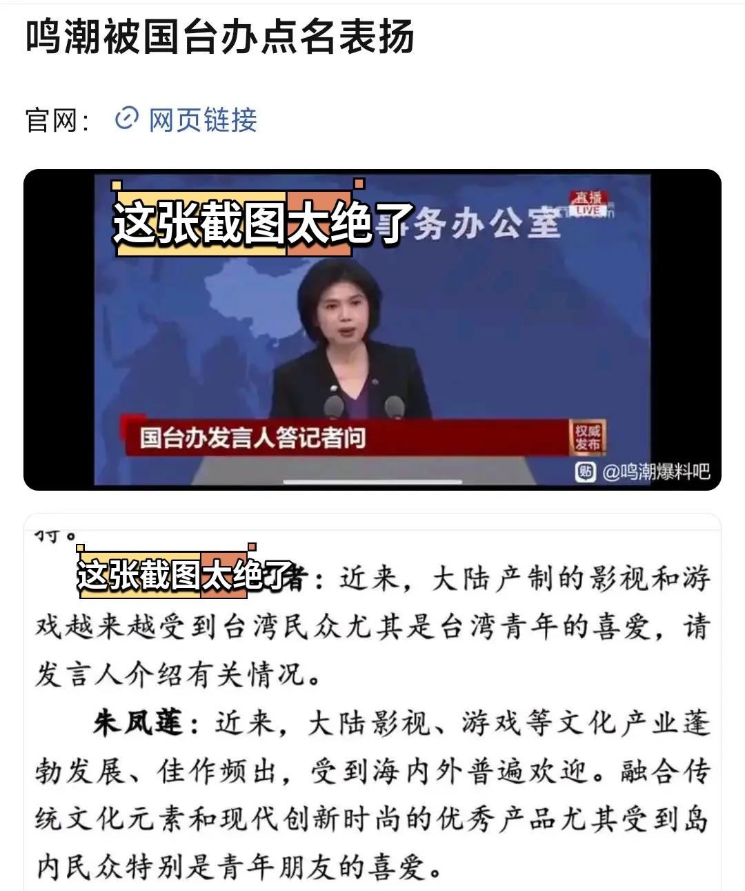 在此次发言中,《鸣潮》被提及展现了大陆游戏的创新实力与文化魅力,不仅在岛内获得众多同胞好评,商业成绩表现也获得了肯定