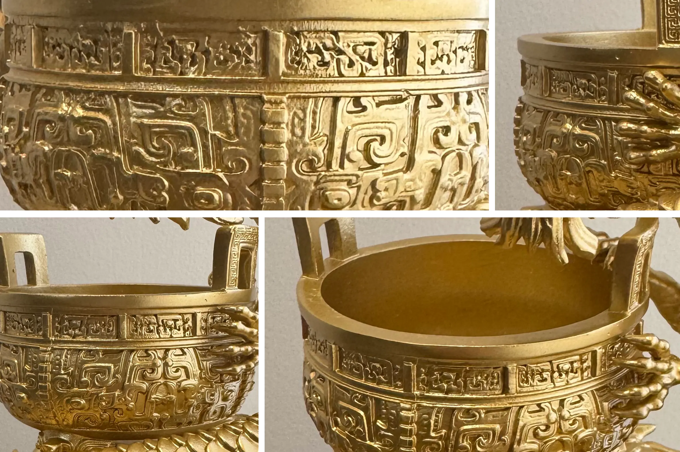 最后我们将优化重点放在了鼎身之上,新增了鼎的纹路细节。这些细节纹路与原本的回纹元素相辅相成,最终形成了现在所看见的成熟设计。