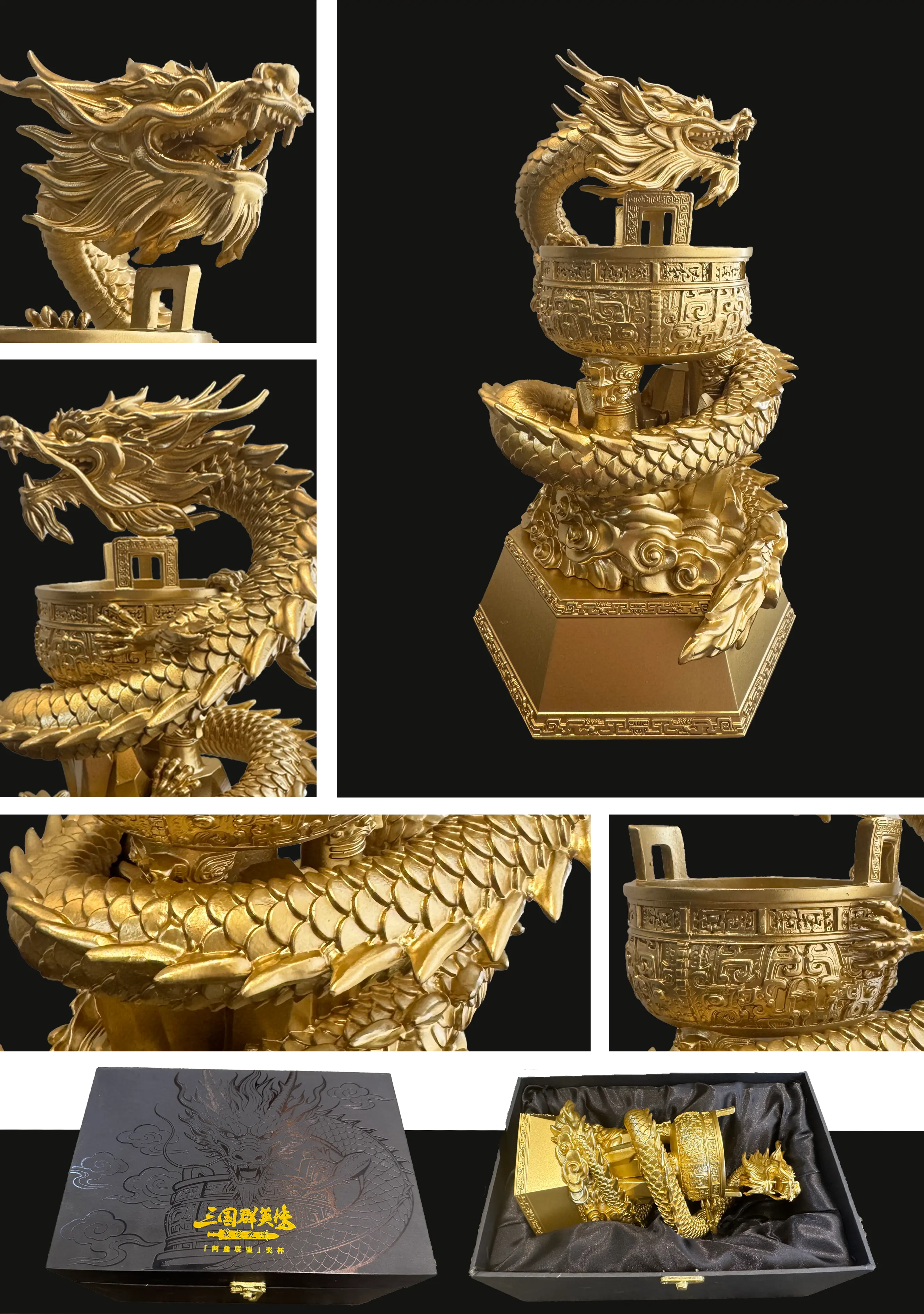 在设计之初,团队就定下了“策定九州,龙鼎铸魂”的核心理念,我们想做的不只是一座奖杯,更是一份能承载三国英雄气概与竞技精神的信物!