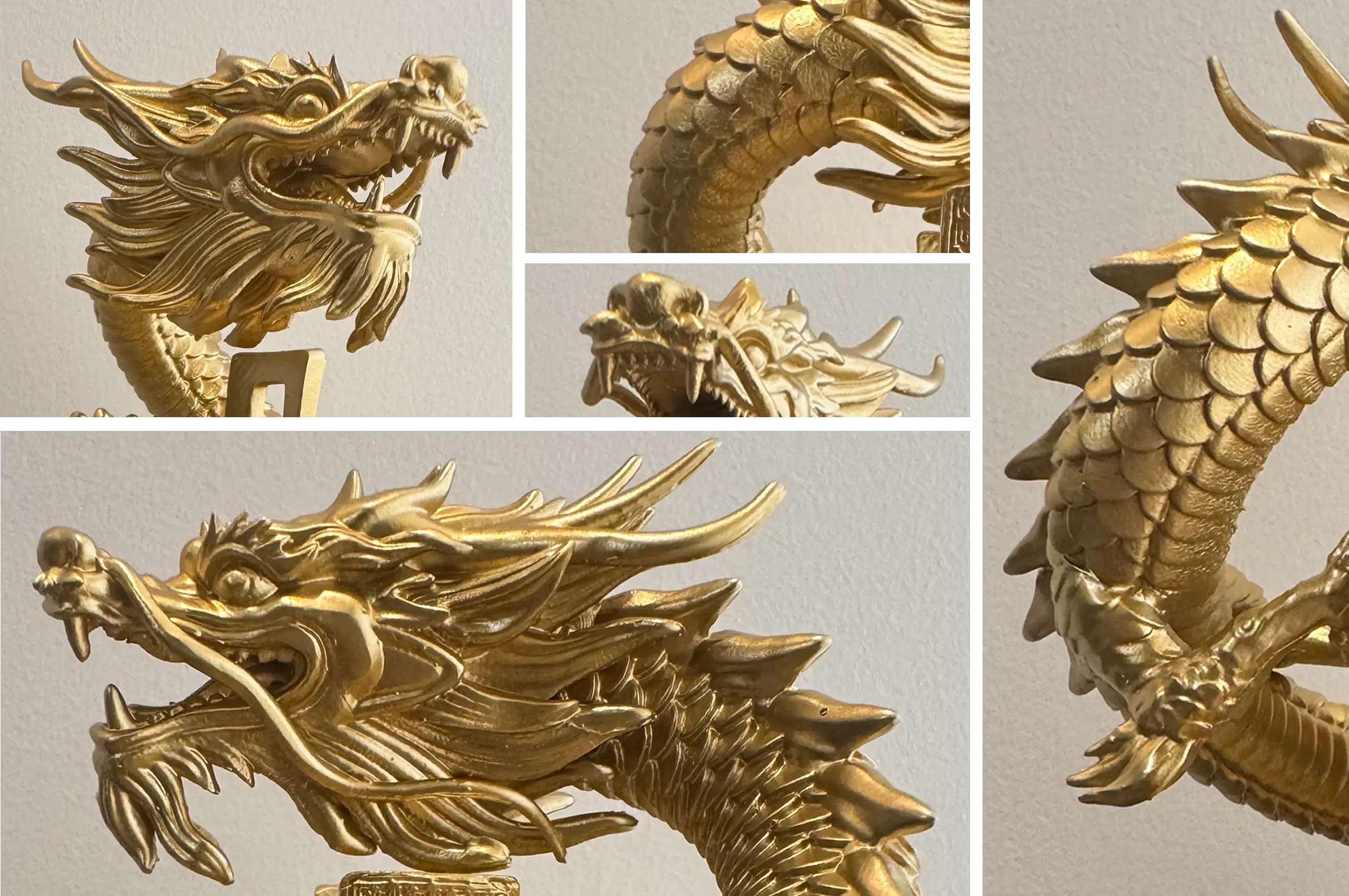进入后续修改阶段,我们新增了龙的鳞片纹路,重点强化了龙纹的表现力,让龙身更显立体生动。