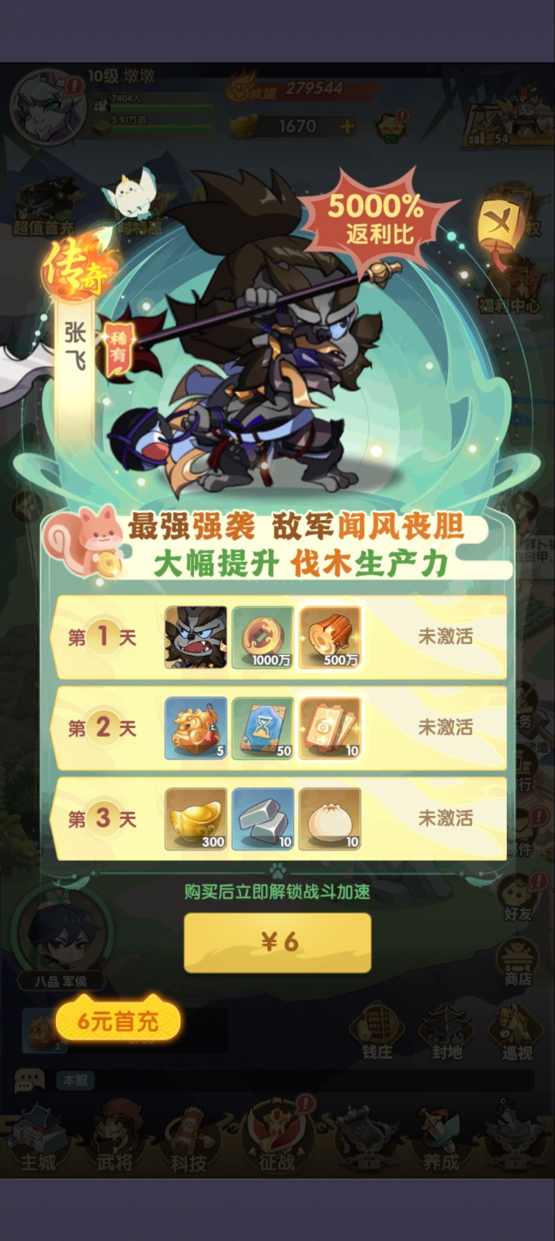 - 首充礼包(6元/18元/30元):强烈推荐,连续多日领取,回报稳定,含高品质萌宠名将、养成资源,是前期战力起点。