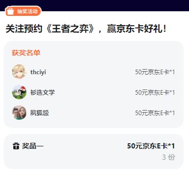 【获奖公示】预约活动京东卡奖励获奖名单公示