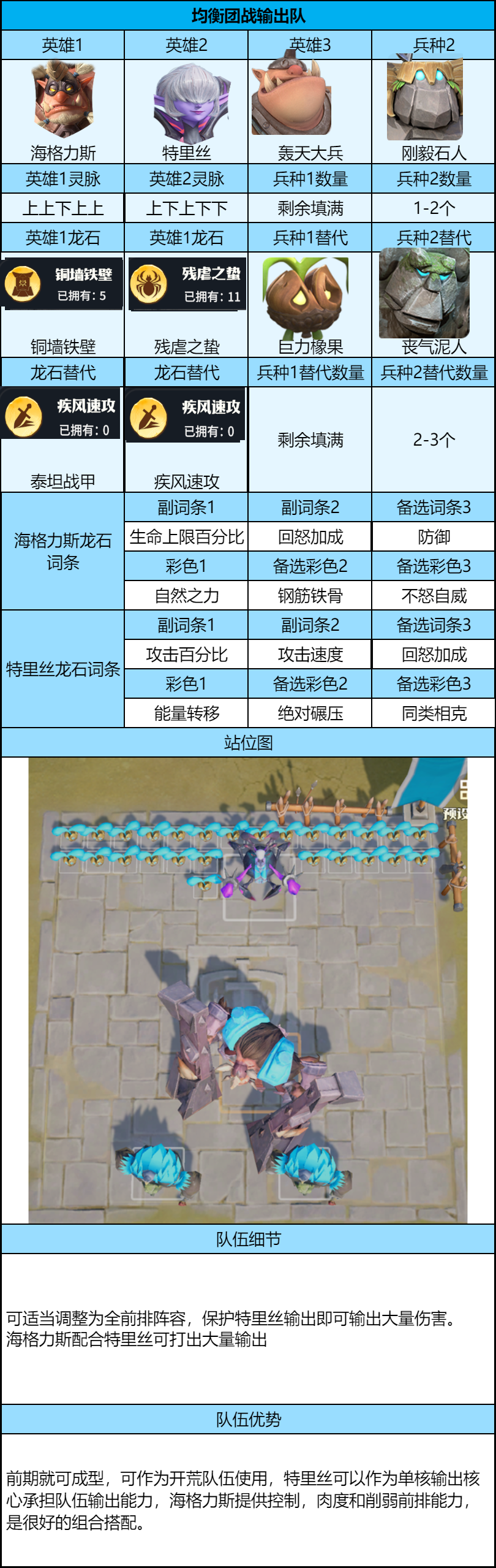 高养成体系建议保留 2-3 队高强度单军队伍,首选西奥多 + 布巴;其余队伍则推荐搭配团战流辅助,以形成体系互补。