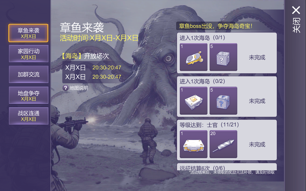 开服活动夺金狂欢 更换为 章鱼来袭,全服合作击败大章鱼,争夺BOSS掉落宝箱。