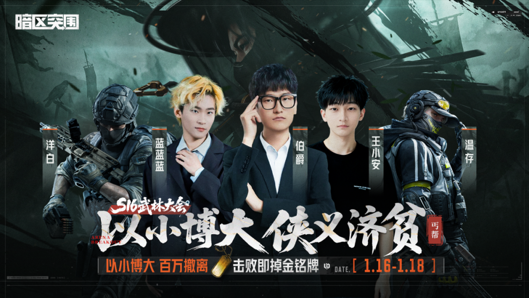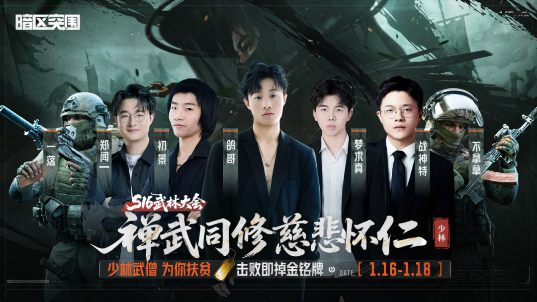 1月16日-1月18日,金铭牌限时返场!主播全员变身117,上演"侠客勇闯江湖",凡击败主播者,即可斩获高价值金铭牌!