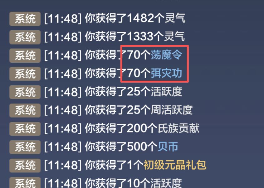 第三步:击杀浊域魔物后即可获得荡魔令和弭灾功(荡魔令和弭灾功不会因为死亡丢失),战胜的魔物等级越高,获得的荡魔令和弭灾功越多!