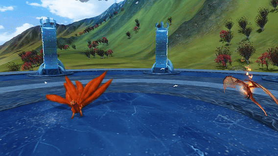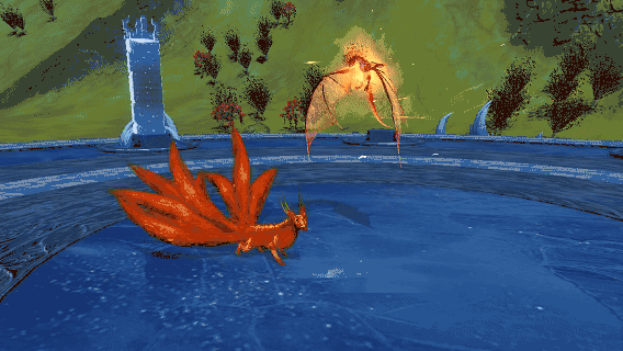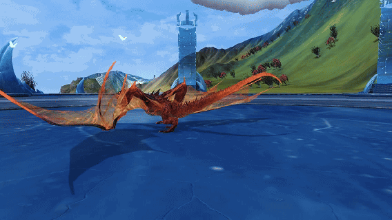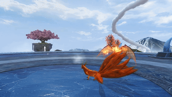 万物焚尽:在地面释放时,炎焱龙旋转着飞向高空,蓄力后展开双翼制造一次火焰爆炸,随后召唤数枚巨大的火球跟随炎焱龙一起俯冲并砸向地面制造剧烈的爆炸,同时地面会留下裂痕,短暂延迟后裂痕将二次爆炸(近程伤害);在空中释放时将会直接召唤火球进行俯冲(近程伤害)