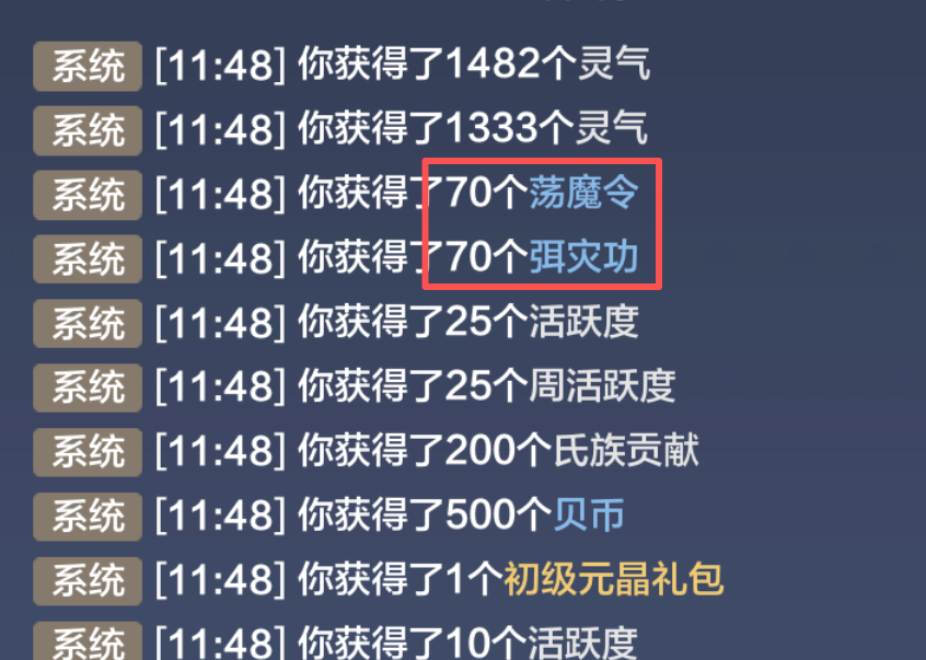 2完成任务得大量荡魔令!
