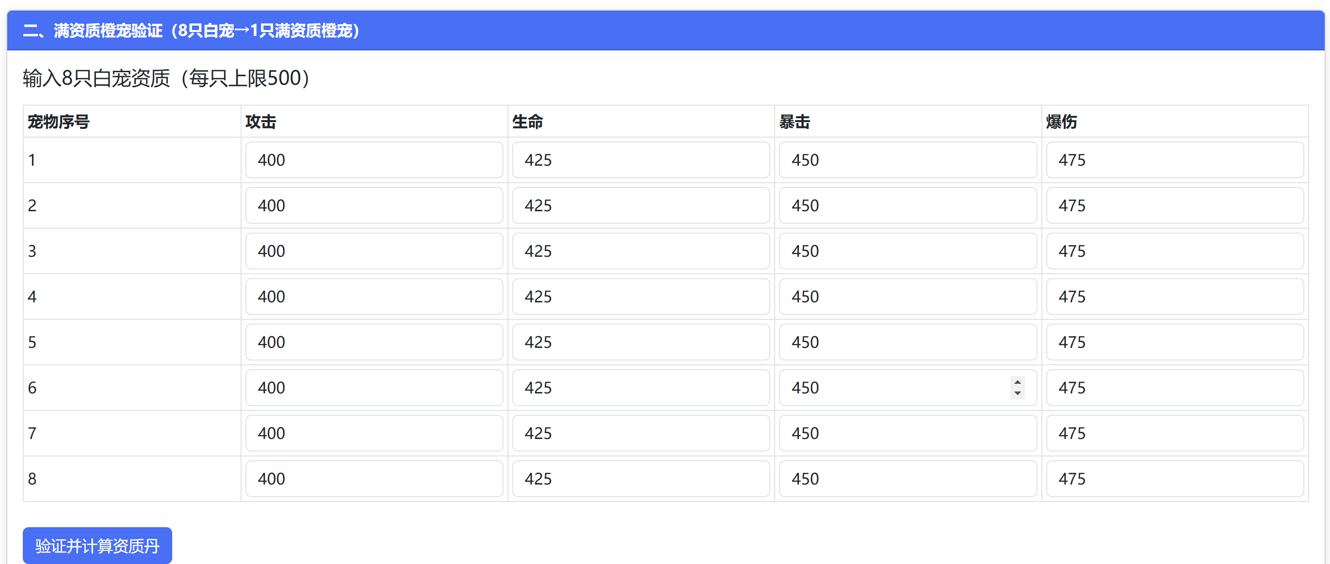 只需要输入你想要合成的宠物资质,便能直接计算出结果。