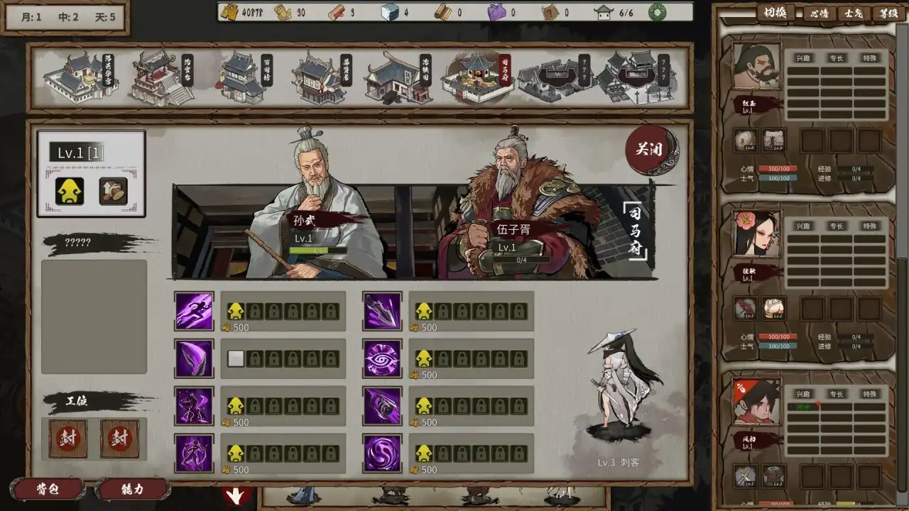战斗之余我们还可以修建我们的城镇,建造侠士们的世外桃源,广纳豪杰,招募春秋时代的传奇名士,为队伍提供各种兵器和加成,为我们的下一次出征做足准备。