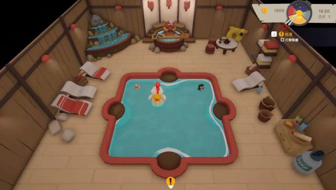 游戏的时间是实时变化的,并且没有真正意义上的暂停,在白天餐厅较忙的时候,你就可以和你的好兄弟一起经营打理餐厅,到了晚上人员稀疏的时候,就可以选择探索城镇、钓鱼等放松一下自己,个人感觉这种劳逸结合的玩法更能让玩家们长时间沉浸在游戏上。当然,如果你想跳过某一阶段,也可以通过睡觉快速过渡,一切选择权都在玩家身上。
