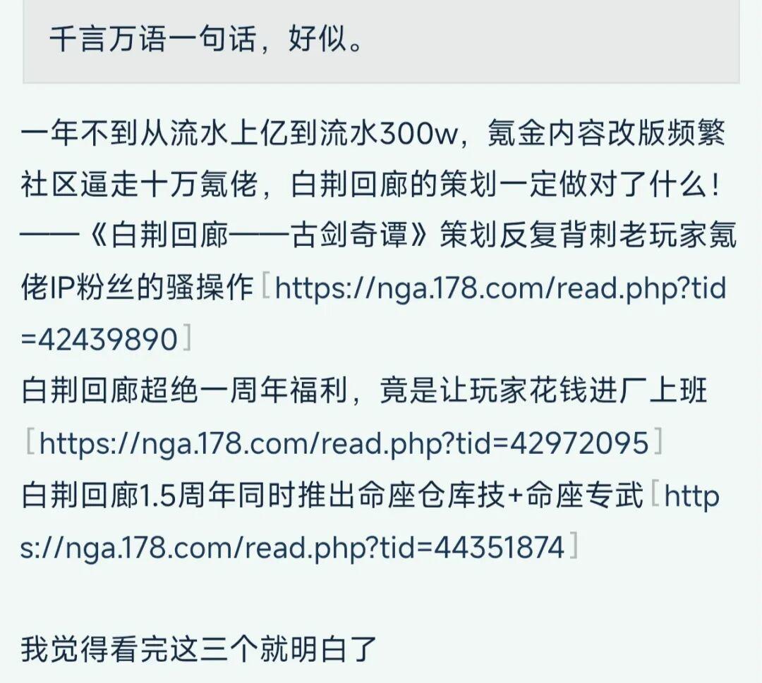 虽然姬在这里放下了很多玩家的评论,但对于曾经时常爆瓜的《白荆回廊》来说,这大概算是九牛一毛吧……