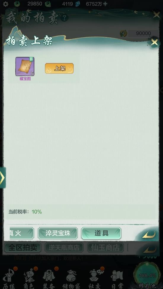 宝物一旦成交,拍卖行将从成交价中收取 10% 为仙税(至少1仙玉)。税后纯净收益,将由邮件即刻送达,仙玉即刻到账,助您道途畅行!