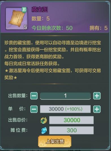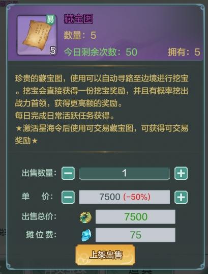 1、上架奇珍备好欲售之物(如藏宝图),点击【上架】。