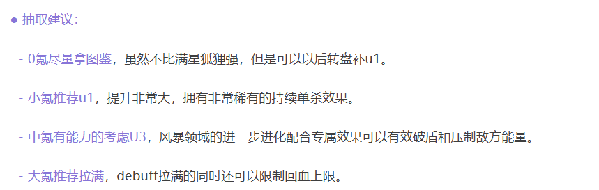 这个时候就开始偏离人话了,因为从尤菲米娅开始魔灵就成了纯钻最多多十抽,如果先前没有垫足够的话不一定能出。当然,人家说尽量了,所以我也只说“开始偏离”。至于转盘补ur1,转转是要氪金才能保底的,不氪纯靠运,让零氪指望这个去补ur1不现实。这时候就有点“何不食肉糜”的意思了,因为在重氪眼里转盘就是能稳定出,那至于重氪为什么这么认为呢?因为第一个保底需要的钱在重氪眼里压根不是事。