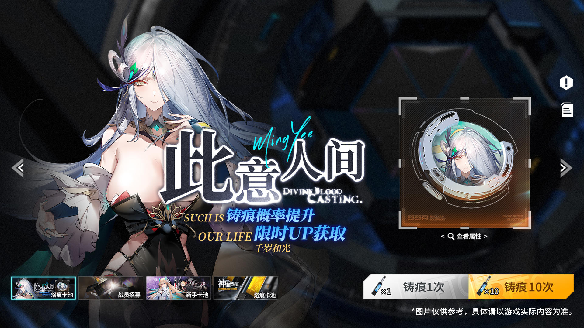 2.「此意人间」铸痕卡池开启!鸣晔专属烙痕「千岁和光」铸痕概率提升。