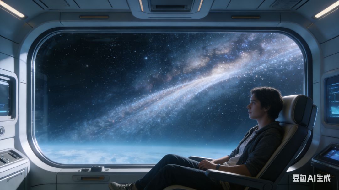 窗外,湛蓝的地球弧线开始缓缓浮现。你鼻子可能会突然一酸。你想起自己为这张“船票”熬过的夜、掉过的头发、憋回去的委屈。山和海、人山人海,都变成了脚下那颗缓缓旋转的蓝色玻璃球。然后飞船进入深邃的黑暗,星星不再闪烁,而是凝固成永恒的光点。歌正好到那段漫长的、循环的吟唱: