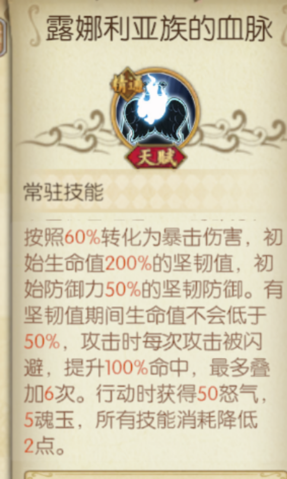 露娜利亚族的血脉:坚韧卡的基础天赋,坚韧版本必备。