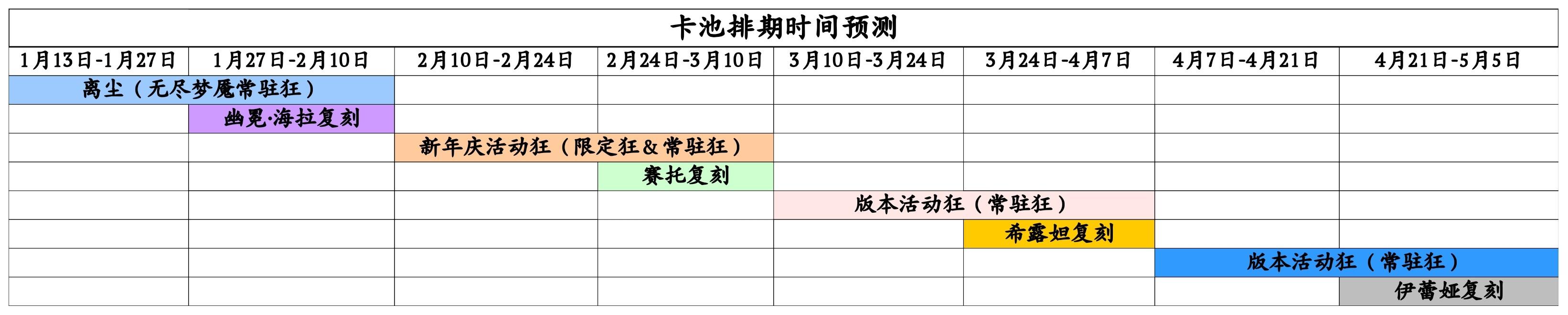 需要注意:离尘卡池之后会继承给新年的常驻陪跑狂,新年的限定狂继承的是八月份的奥古斯特卡池