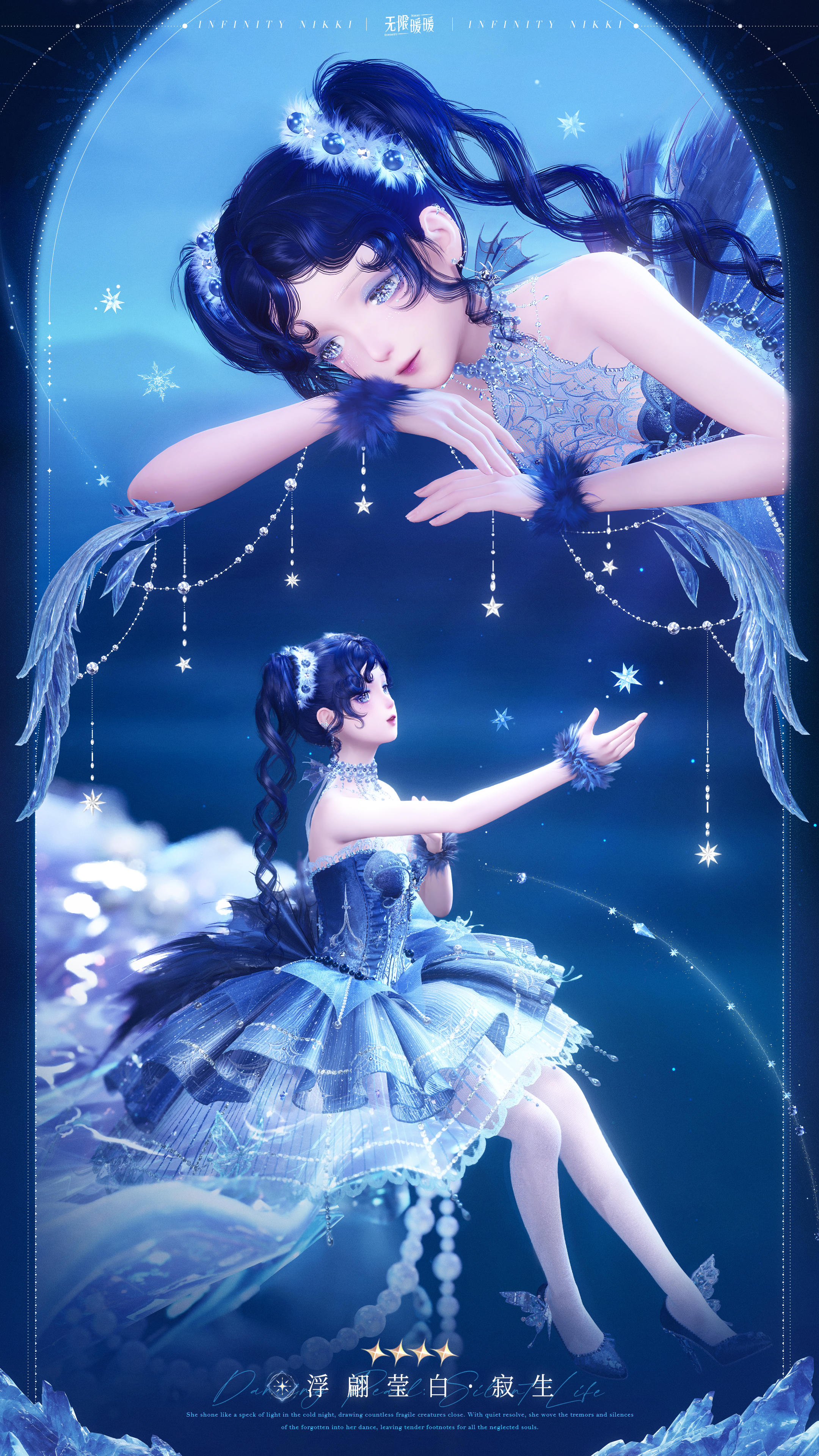 「浮翩莹白」进化后为套装「浮翩莹白·献礼」。套装焕新完成后可获得「浮翩莹白·寂生」。