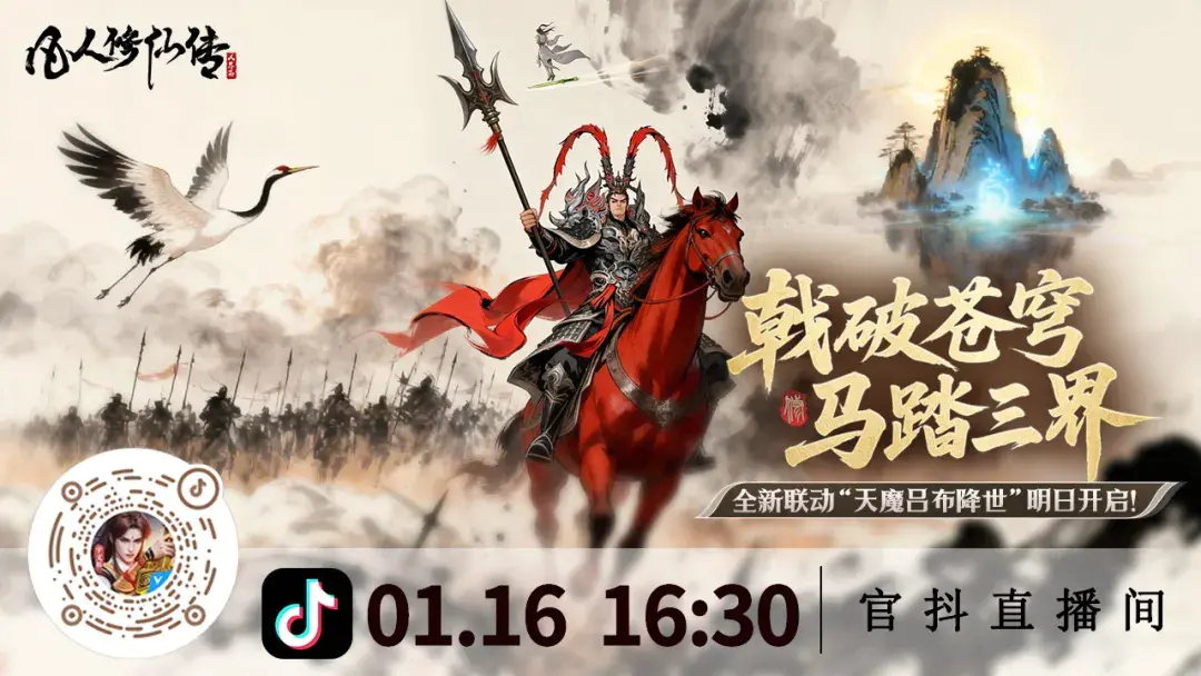 为迎接这位跨界而来的最强战力,官方抖音直播间(抖音号:fanren2023)准备了专属降临活动,海量灵石福利全程放送,福袋、抽奖、兑换码轮番上阵,让你体验“灵石领到爽”的畅快!