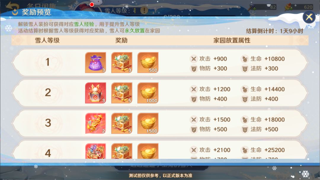 冬日闲趣活动结束时,我们将按雪人等级为守护使结算奖励,结算后雪人可永久放置在家园,让白雪不再只存于冬季,而是能与您相伴四季~● 在家园放置雪人后,守护使将无法再变更家园内雪人的形象,所以在放置前,一定要好好确认一下哦!● 若结束时守护使未手动放置雪人,则系统将以当前形象自动将雪人放入家园。