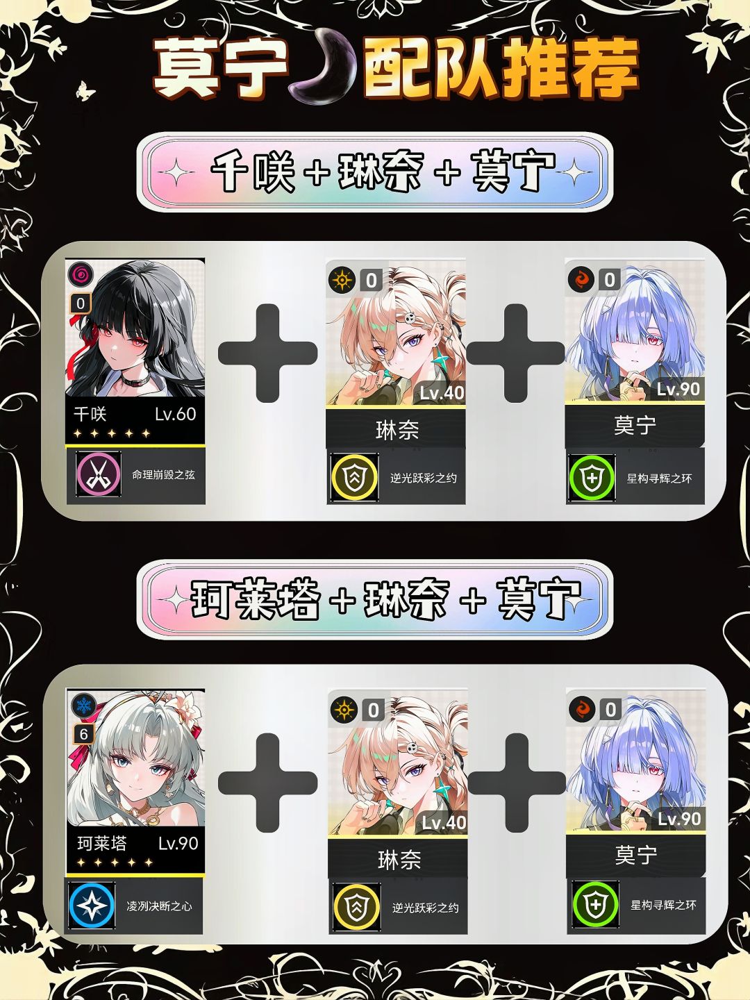 🚨莫宁作为 三号辅助位(新守岸人) 配队里不是非得要有琳奈,主要是如果没有琳奈副C的话就吃不上新机制所提升的40%的加成,只能有原本的攻击力,属性加成这些buff。