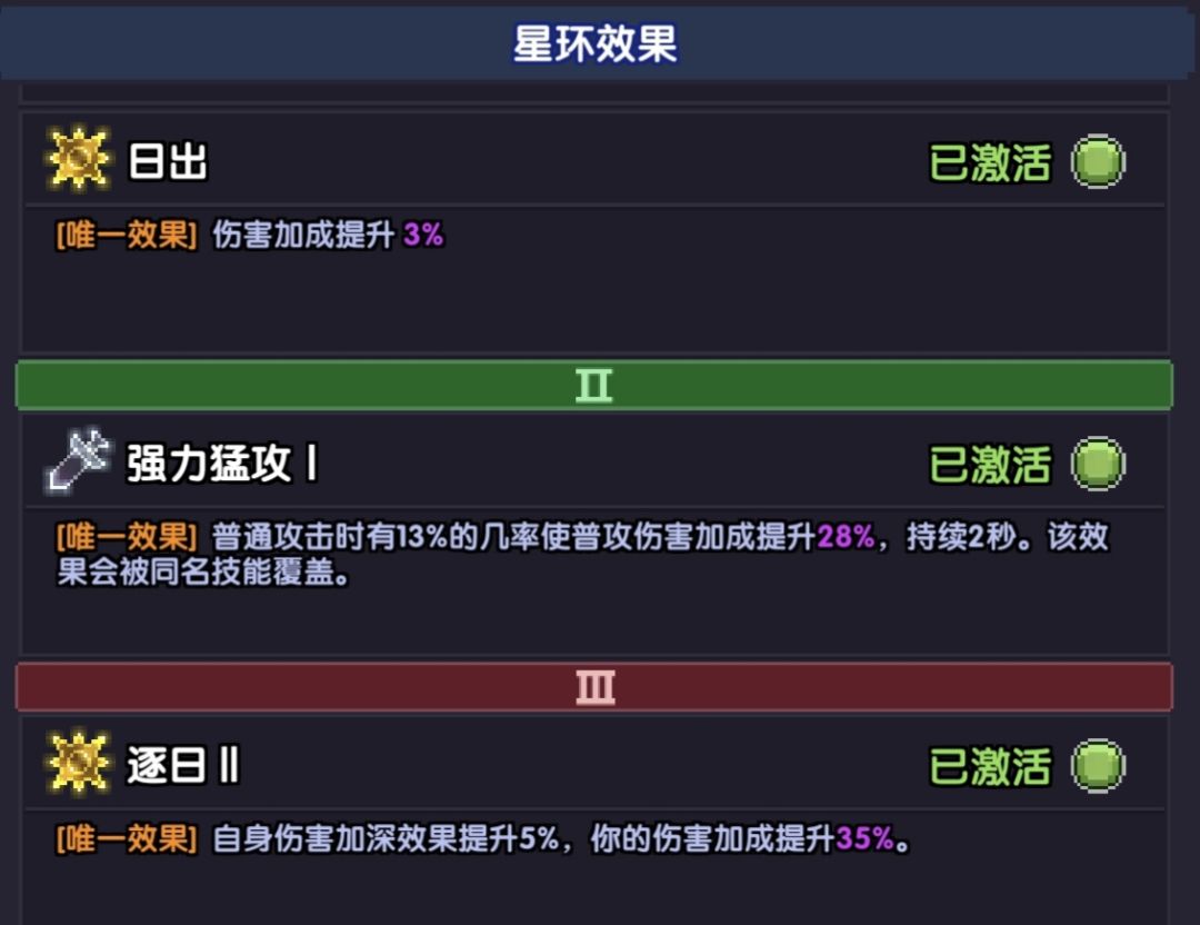 三环:追月:你的全属性伤害增加45%,但受到敌方攻击时额外扣除10%能量。