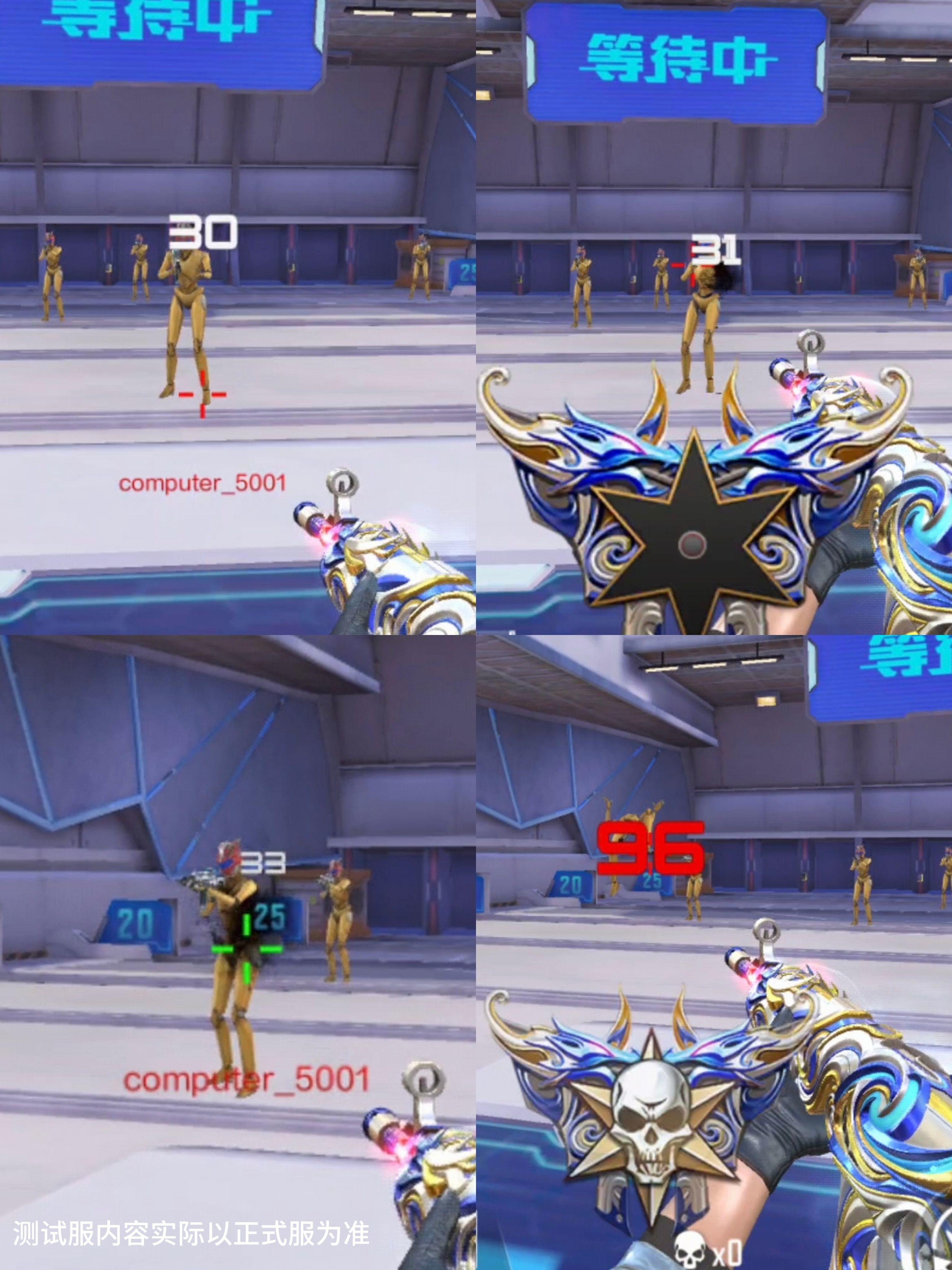 我们将QBZ03-云龙和QBZ03-天罚进行对比,在家园中进行伤害测试,基本上同样近距离的位置下,QBZ03-云龙的腿部伤害为30,手部伤害为31,上半身伤害为33,爆头伤害为96。