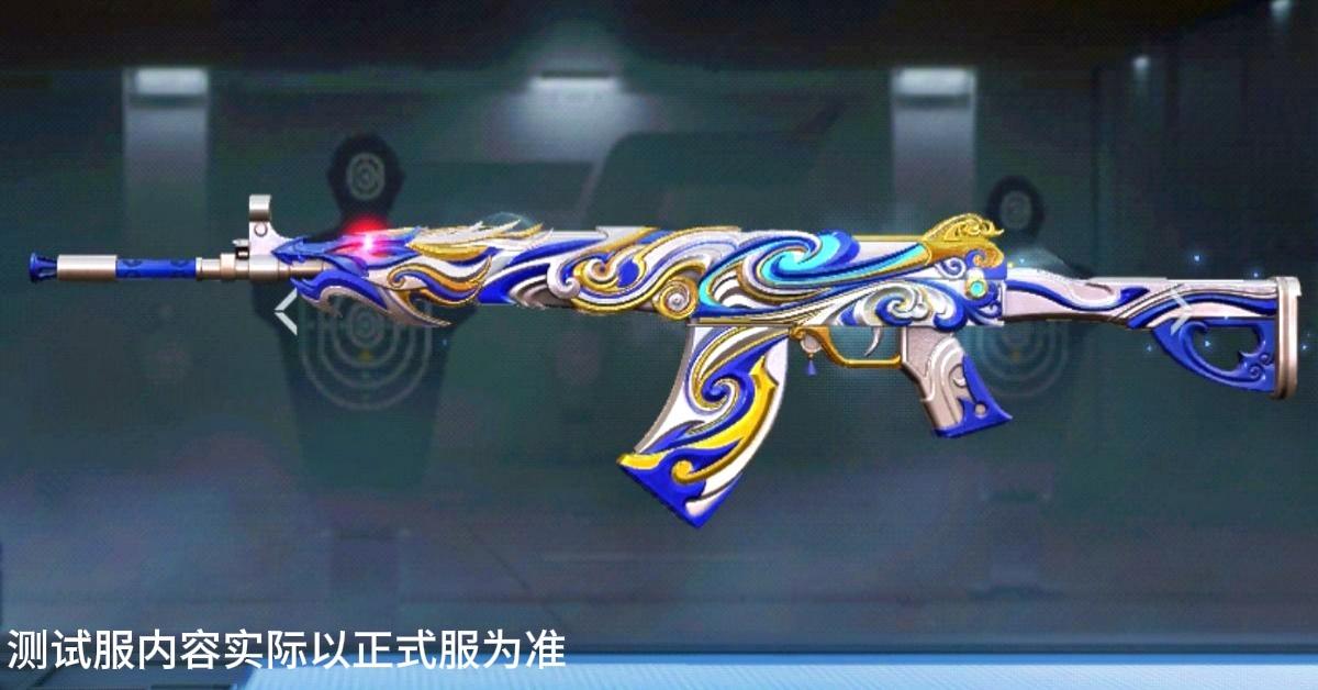 护木与握把处的云纹呈渐变式延展,蓝白底色上的鎏金线条锐利又飘逸,枪托镂空设计呼应云纹主题,整体既显古典华贵,又不失现代武器的凌厉质感,静置时仿佛有云雾在纹路间流动,将 “云龙” 的祥瑞与锋芒完美融合。