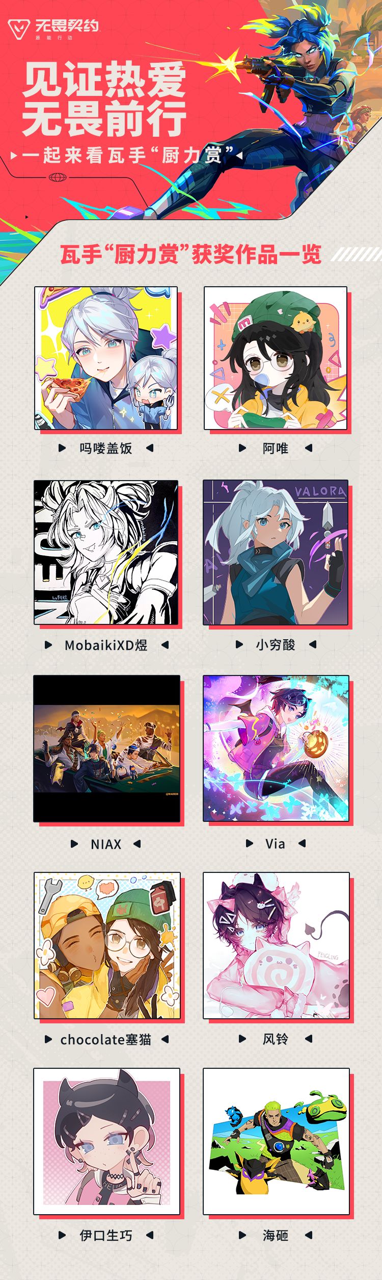 1.参与方式:在本帖评论区说出你喜欢的作品+声援无畏契约手游,即视为参与活动成功;