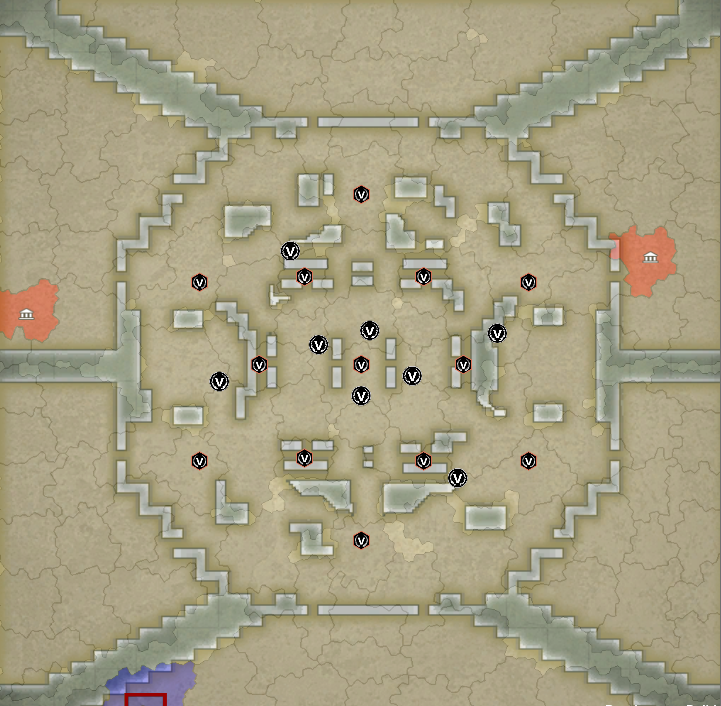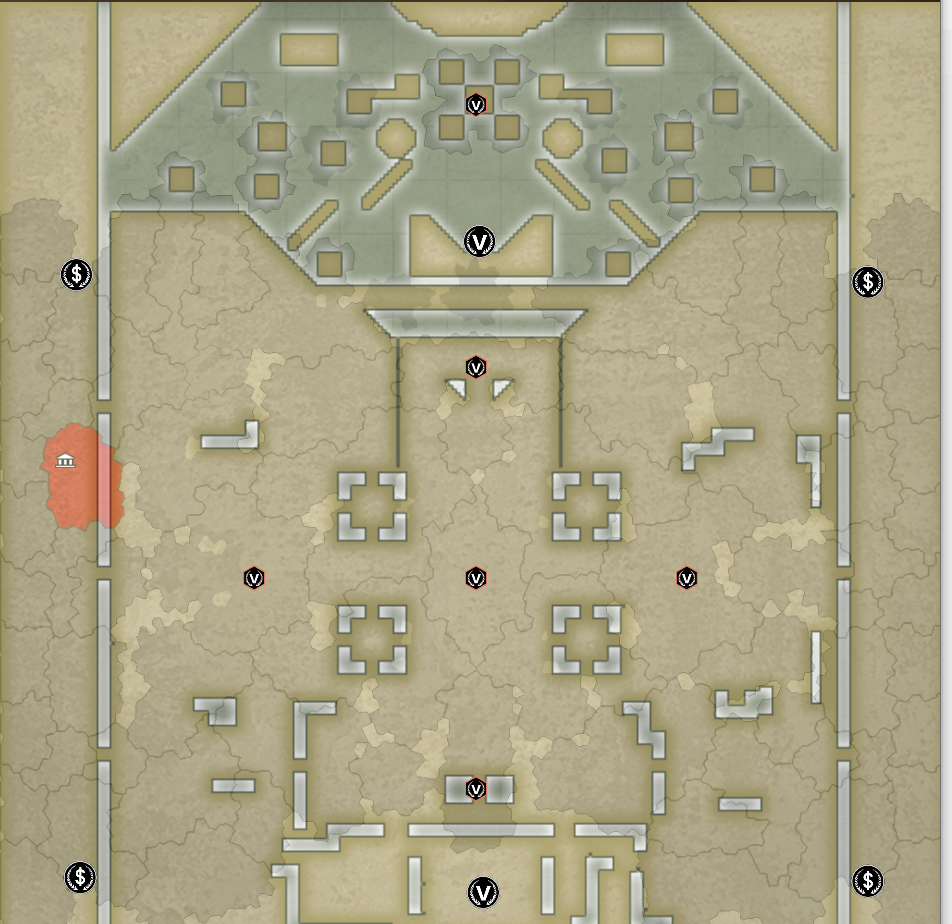 【红色黎明】的边缘分为6块出生区域,6组队伍的统帅将落地在这里。 地图采取连地玩法,只有顺着公路占领才可解锁下一个行政区。 每个出生区域和中心地带有关卡阻碍,关卡城市存在1小时保护,统帅们有一定时间在本土发育。
