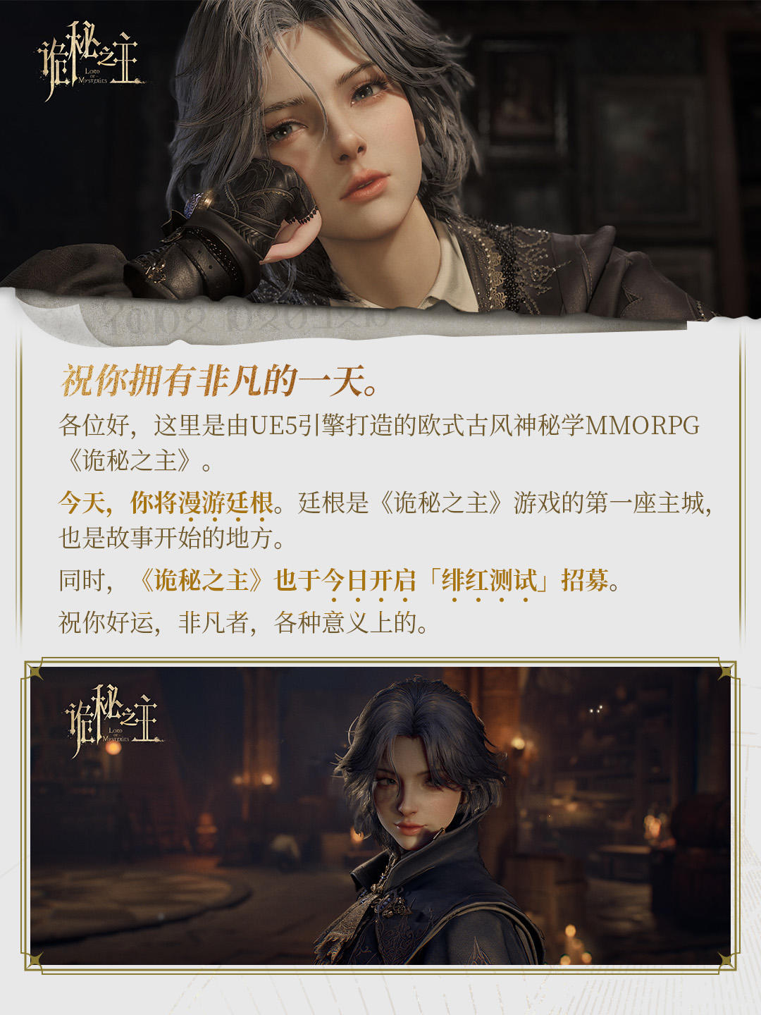 1月15日,由快手游戏旗下弹指宇宙团队倾力打造、虚幻5引擎的西方神秘学题材MMORPG《诡秘之主》掀开了神秘面纱,正式发布了游戏首座主城“廷根”的完整概念预告PV,并同步开启名为“绯红测试”的首轮PC平台技术测试招募。