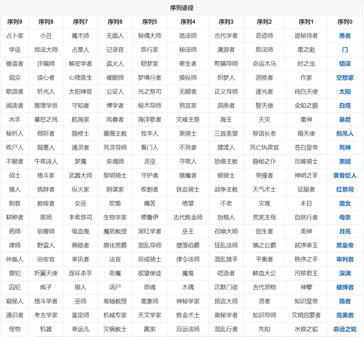 每个序列途径(如“占卜家”、“战士”、“偷盗者”)从低到高的能力设计与特质截然不同,拥有专属的职业哲学甚至社会隐喻,“魔术师不做无准备的表演”、“牧羊人放牧灵魂”,云云。