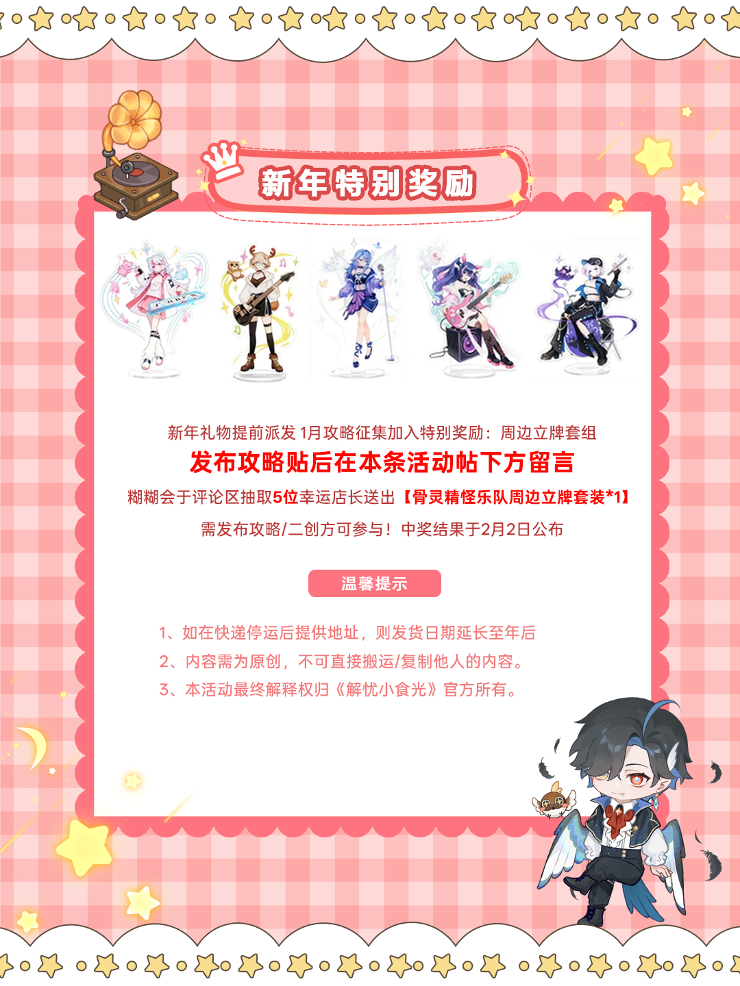 没错,1月攻略征集活动现已追加特别奖励:【骨灵精怪乐队周边立牌套装】