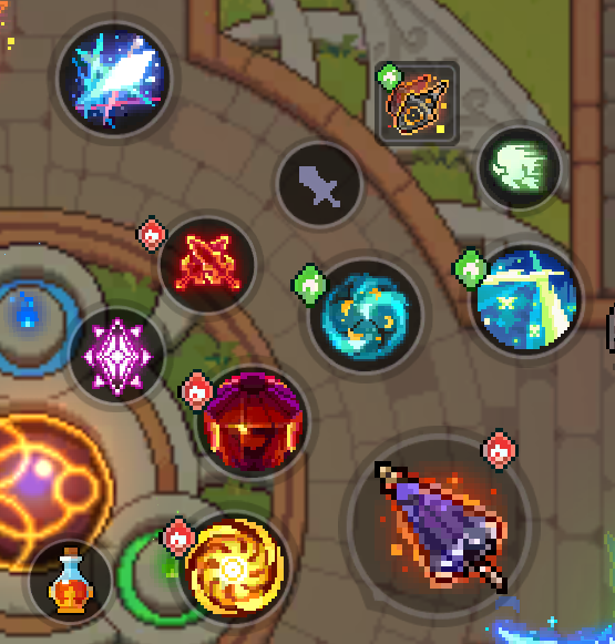 装备特性方面,比较有用的是强压和弹刃。强压用于快速挂上疾跑宠物闪烁雷星的buff。
