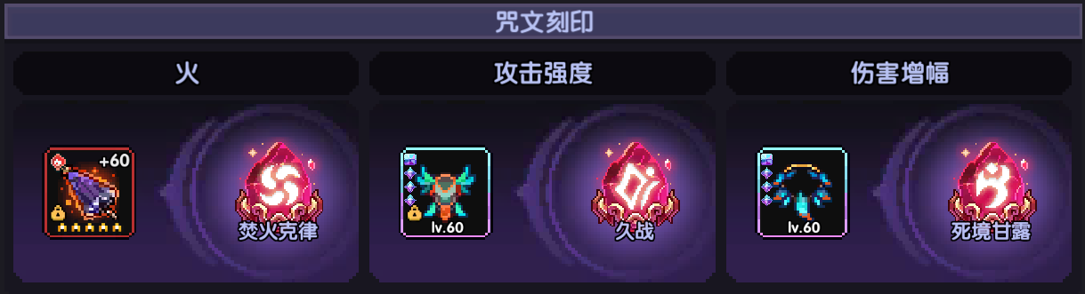 - 防具卡:主属性攻强百分比+副属性火功/攻强