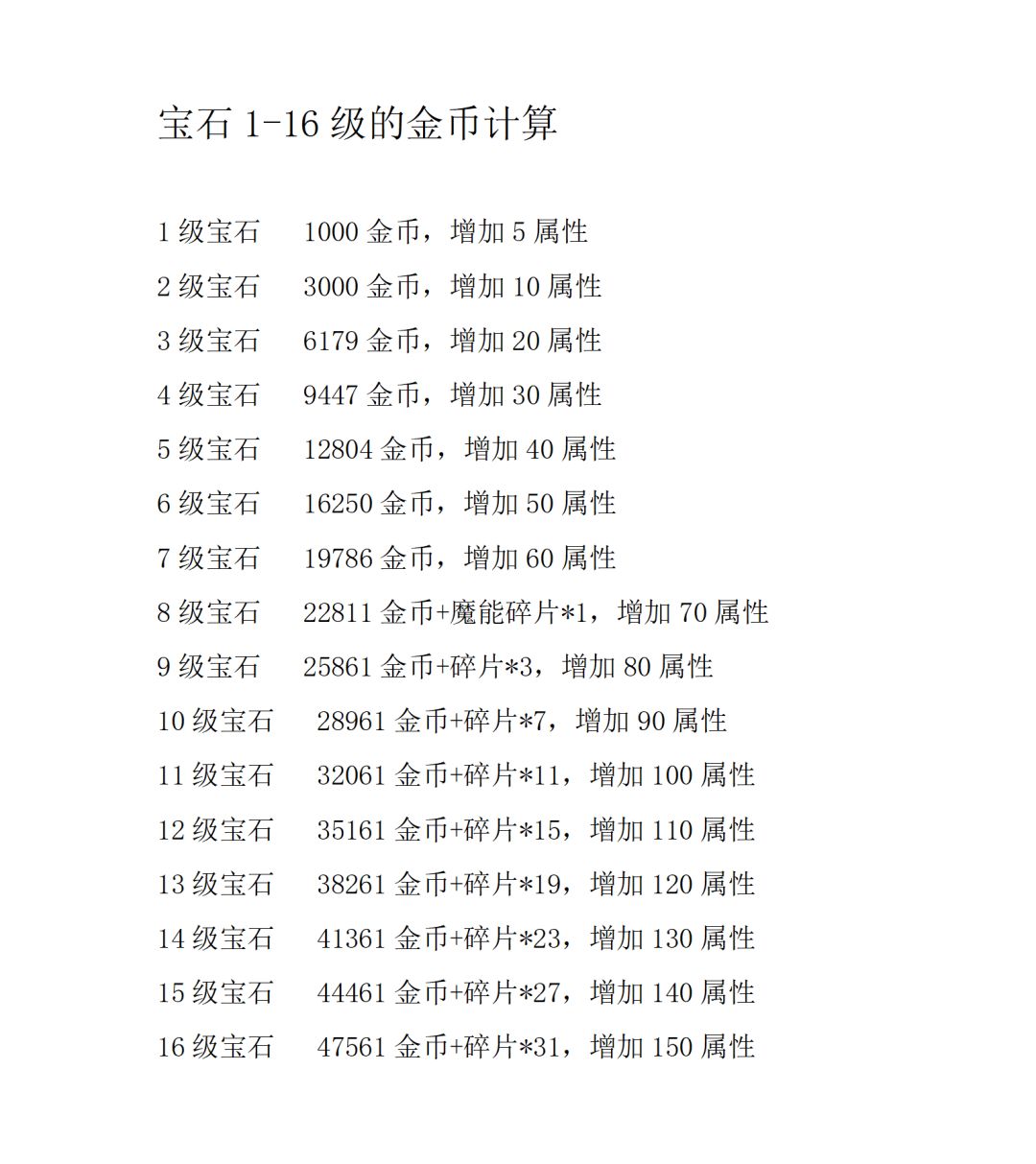目前宝石的等级为最高16级,我们来算一下16级宝石单个的费用是多少吧