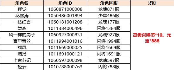 将在所有按要求参与回复的主公中,随机抽取10位主公送出: