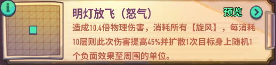 - 扩散说明:『明灯放飞』每消耗10层【旋风】扩散1次目标身上任意异常状态至周围一格范围内目标,层数不会超过该异常层数上限,且同异常状态不会重复扩散。攻击目标自身异常层数不变