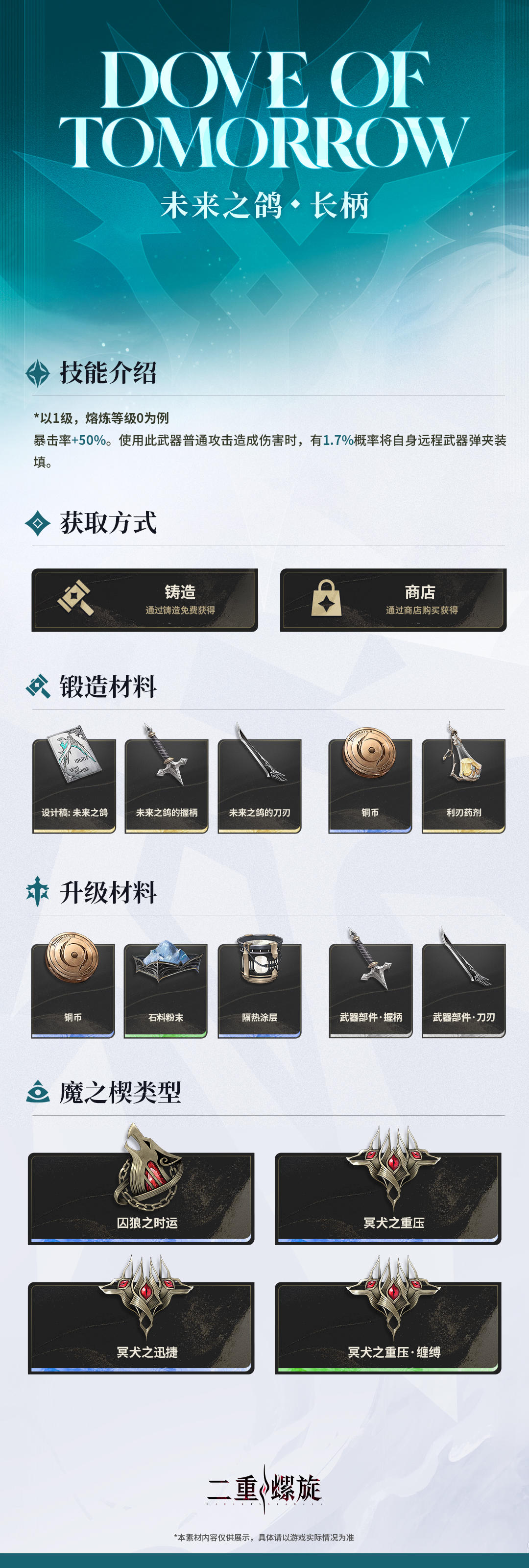 ✦ 武器描述:捍卫尊严而飞翔的白鸽,誓将每一枝翼羽都献给名为未来的天穹。