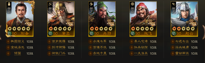 蜀国阵容推荐二:五虎上将
