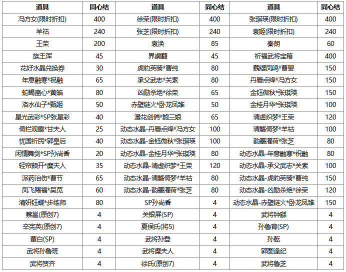 1、同心结可兑换奖励,若兑换奖励是在此次活动前已拥有的永久武将、皮肤、三国秀,则无法重复兑换。