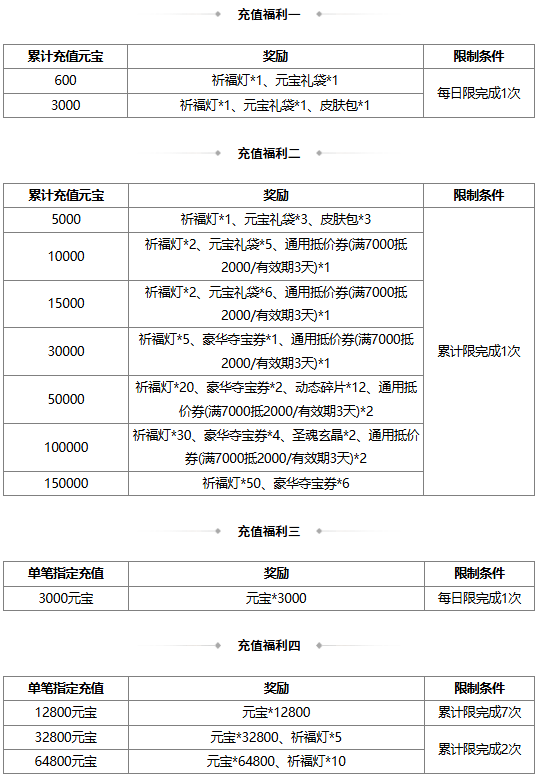 活动时间:2026-1-17 00:00:00~2026-1-24 24:00:00单笔指定充值,大于或小于指定充值数,都无法获取奖励。