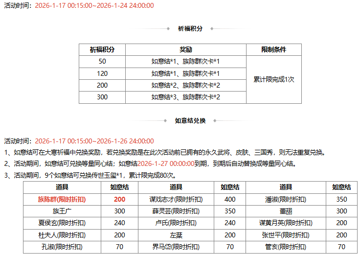 2、若兑换奖励是在此次活动前已拥有的永久武将、皮肤、三国秀,则无法重复兑换 ;