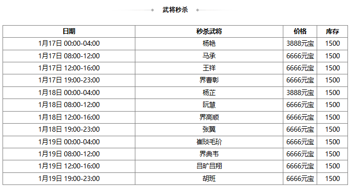 *本期上新 大寒龙珠(谋华雄)、腊月龙珠(李婉),返场 早秋龙珠活动(闪刘宏)、春福龙珠活动(谋张绣),龙珠可购买时间:2026-1-17 00:15:00~2026-1-24 24:00:00;